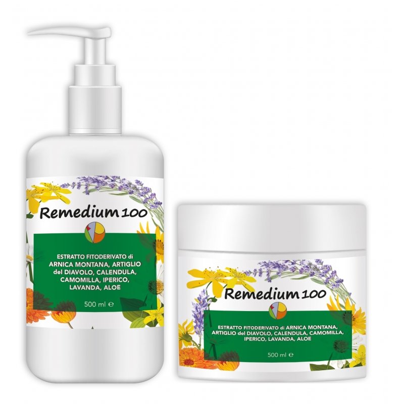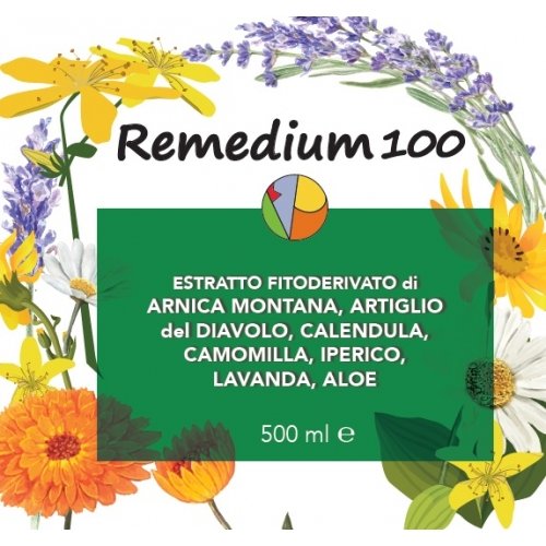 Remedium 100 Estratto fitoderivato di Arnica Montana, Artiglio del Diavolo, Calendula, Camomilla, Iperico, Lavanda e Aloe rendono questo gel particolarmente indicato per il massaggio muscolare nei casi di preparazione all'esercizio fisico e allo stesso tempo anche come defaticante e rilassante dopo lo sforzo muscolare..