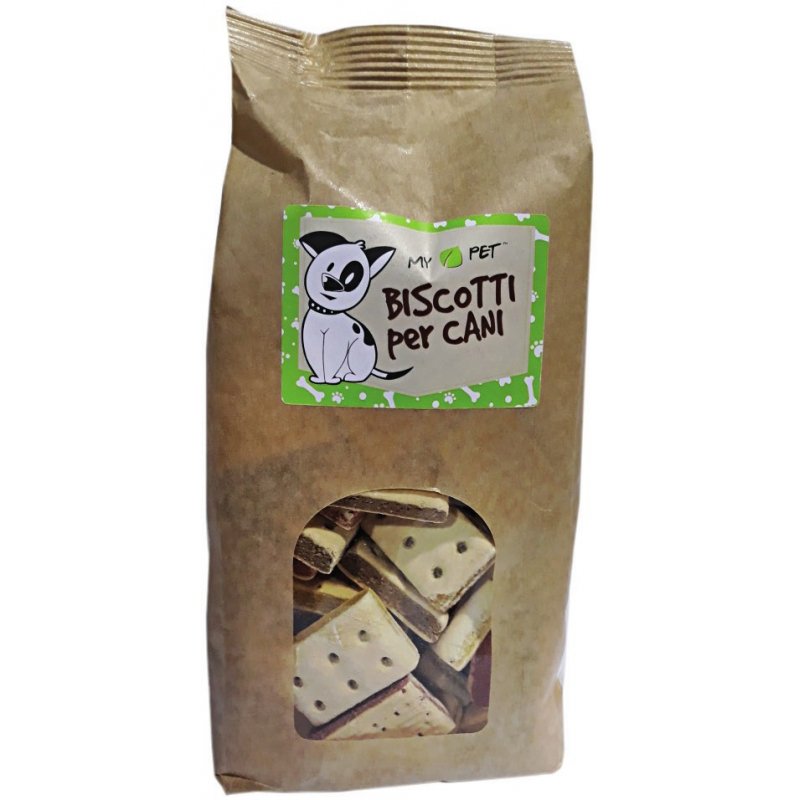 La particolare formulazione di MY PET Biscotti Naturali – Tramezzini – per cani adulti, permette un bilanciato apporto di elementi nutrizionali ad elevato valore biologico. Il prezioso mix di farine vegetali, e non di origine animale, infatti, oltre a garantire una straordinaria appetibilità, è stato studiato per migliorare lo stato generale dell’animale, secondo le esigenze di un cane adulto (Medicina Olistica). Il tuo cane quindi sarà più agile, sano e felice anche attraverso l’utilizzo di questi speciali biscotti. L’alta qualità, garantita tra l’altro dalla naturalezza degli ingredienti, permette un adeguato mantenimento della massa muscolare, abbinato ad un perfetto equilibrio psico-fisico del nostro compagno a quattro zampe.