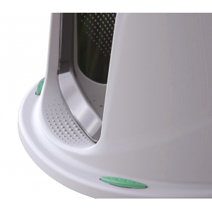 Adatta ai gatti di piccola taglia, e per i cuccioli, alla toilette Galaxy non manca proprio nulla. Lo sportello basculante trattiene i cattivi odori insieme al filtro ai carboni attivi, garantendo una buona e sana areazione. All'ingresso della lettiera si nota una sezione studiata per aiutare la pulizia del pelo del gatto dopo l'utilizzo. Pratica da pulire e da trasportare grazie alla pratica maniglia superiore.