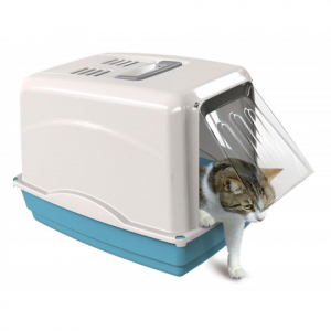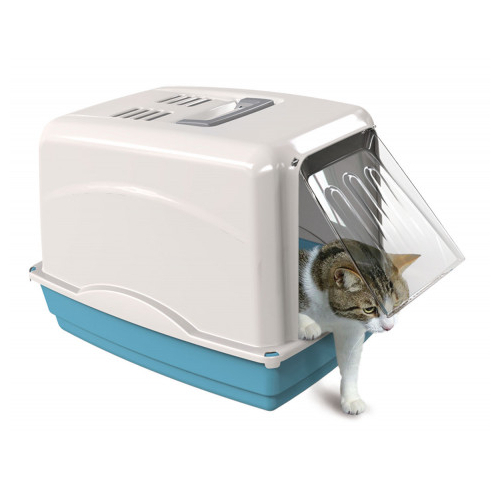 La Lettiera Vicky, con vaschetta, porta basculante trasparente e filtri antiodore è l'oggetto indispensabile per garantire l'igiene in ogni casa abitata da un gatto.