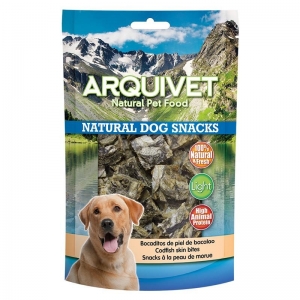 Bocconcini di pelle di merluzzo. 100% naturale. Alto contenuto di proteine animali e pochi grassi. Alimento complementare per il tuo cane, molto ricco di nutrienti.