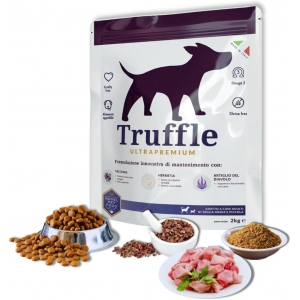 Truffle ultrapremium Tacchino è una ricetta che non contiene fonti di glutine. Si compone di due materie prime principali, il tacchino e la farina delle larve di Hermetia illucens (la mosca soldato): la prima apporta proteine di elevato valore biologico ed è molto appetibile, la seconda, oltre all’elevato valore nutrizionale, si ottiene in modo sostenibile ed è indicata per animali con intestino sensibile. ALIMENTO COMPLETO ADATTO A CANI ADULTI DI TAGLIA MEDIA E PICCOLA