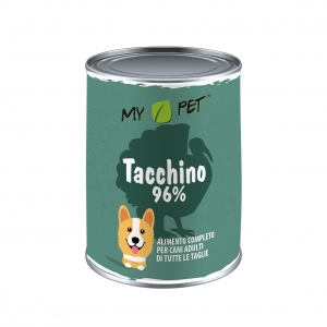 L’umido My Pet al Tacchino è un alimento completo per cani adulti di tutte le taglie. Preparato esclusivamente con materie prime selezionate, è un alimento altamente appetibile e digeribile. È privo di conservanti e coloranti aggiunti.