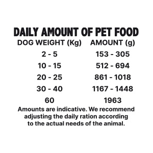 Un delizioso patê di carne macinata per cani adulti di tutte le razze. Arricchito con piccoli bocconcini di frutta fresca. Formulato con una sola proteina animale.