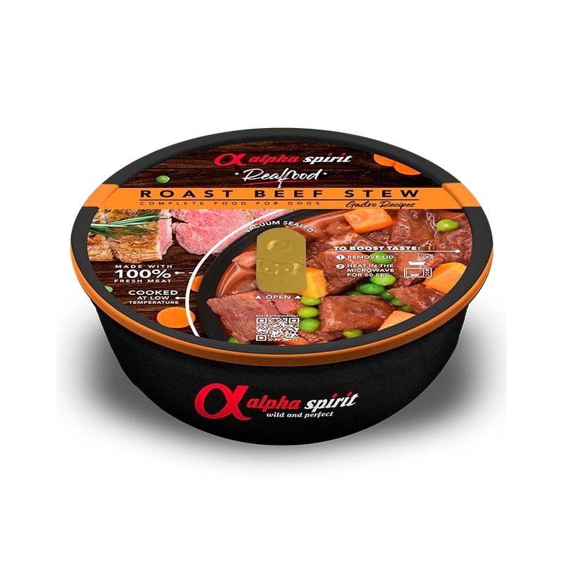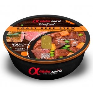 Composizione: 97% carne di manzo in salsa, piselli, carote, zucca, patate dolci e spezie.