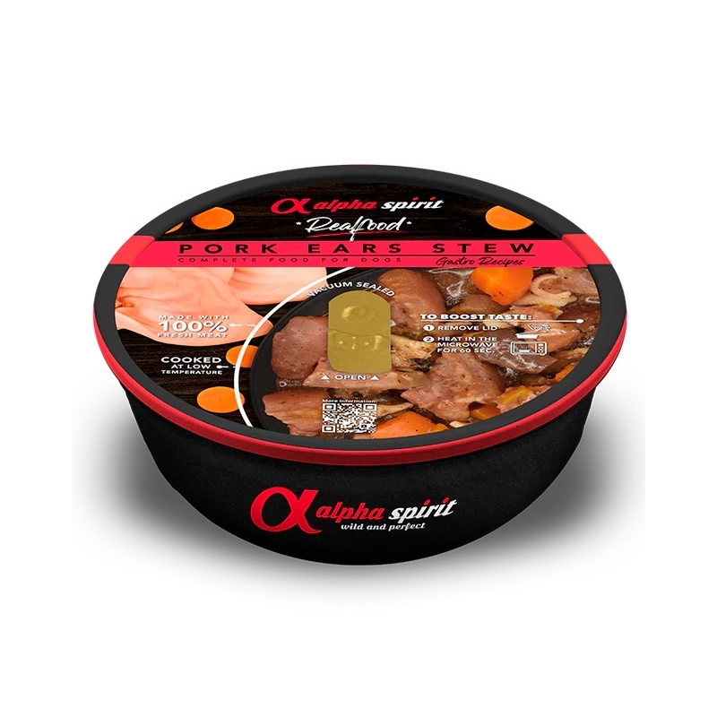 Composizione: 97% orecchio di maiale in salsa, piselli, carote, zucca, patate dolci e spezie.