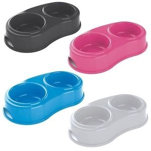 Double è una ciotola doppia, ideale per cani e gatti, realizzata in materiale plastico, disponibile in 2 misure e 4 colori. Scelta del colore casuale.