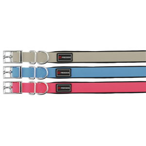 Il collare in pvc è disponibile in tre colorazioni (beige, azzurro, rosa) e tre misure.