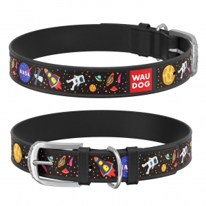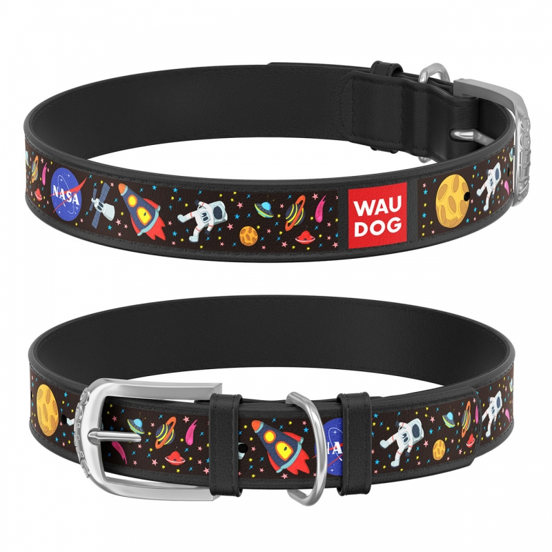 Collare WAUDOG NASA in Vera Pelle nei colori BIANCO E NERO con il logo ufficiale NASA.
