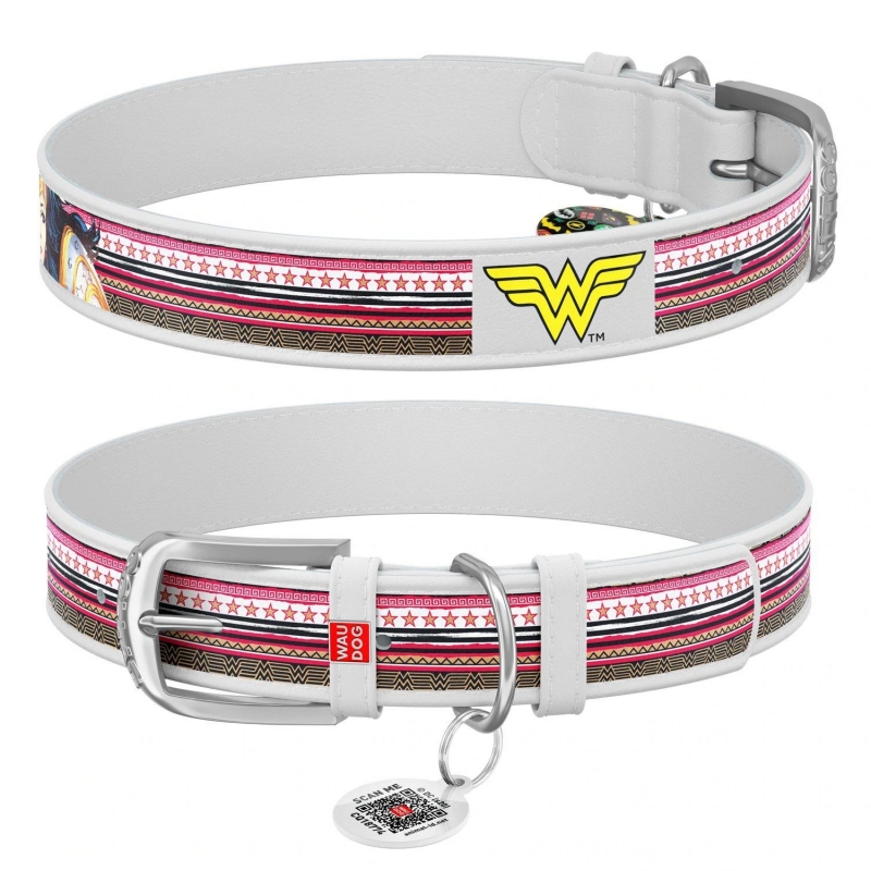 Collare WAUDOG 2 BIANCO in Vera Pelle per cani con QR CODE ! Disponibile anche con guinzagli retrattili, guinzagli e pettorine.