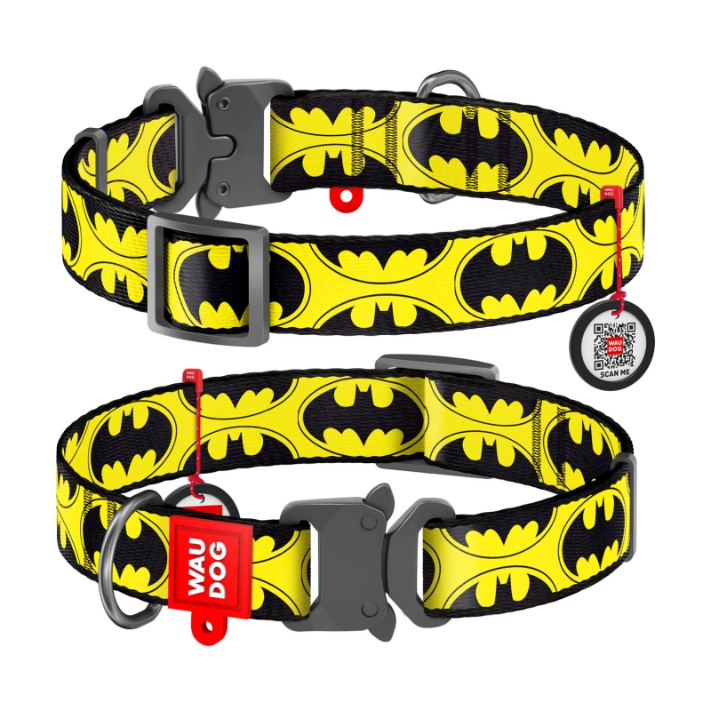 Collare WAUDOG BATMAN LOGO in NYLON con QR CODE - Chiusura in METALLO