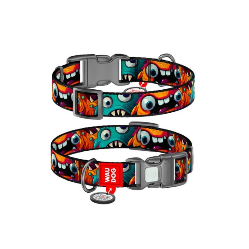 Collare TOOTHED MONSTERS in Nylon per cani con QR CODE - Chiusura in Plastica - Varie Misure