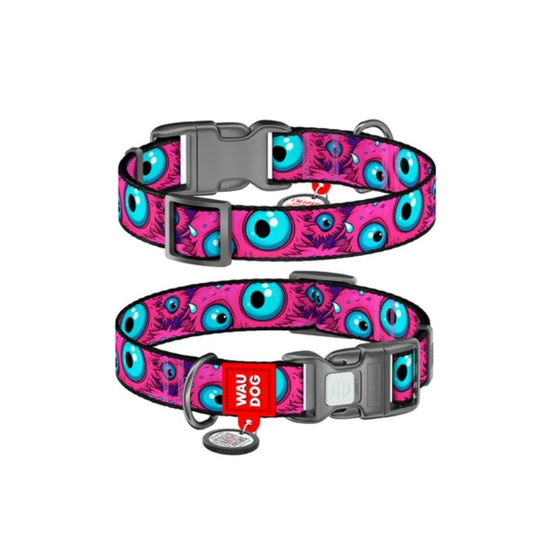 Collare MONSTER EYE in Nylon per cani con QR CODE - Chiusura in Plastica - Varie Misure