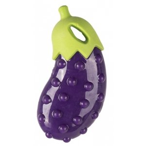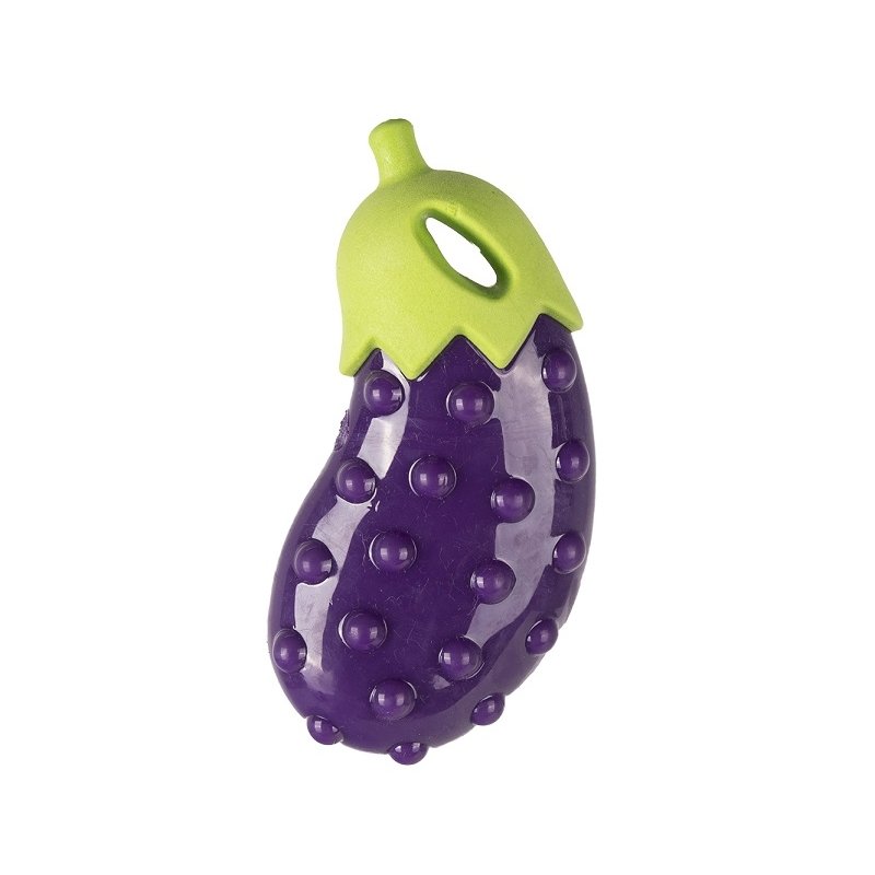 Simpatico gioco in gomma masticabile e resistente a forma di melanzana.