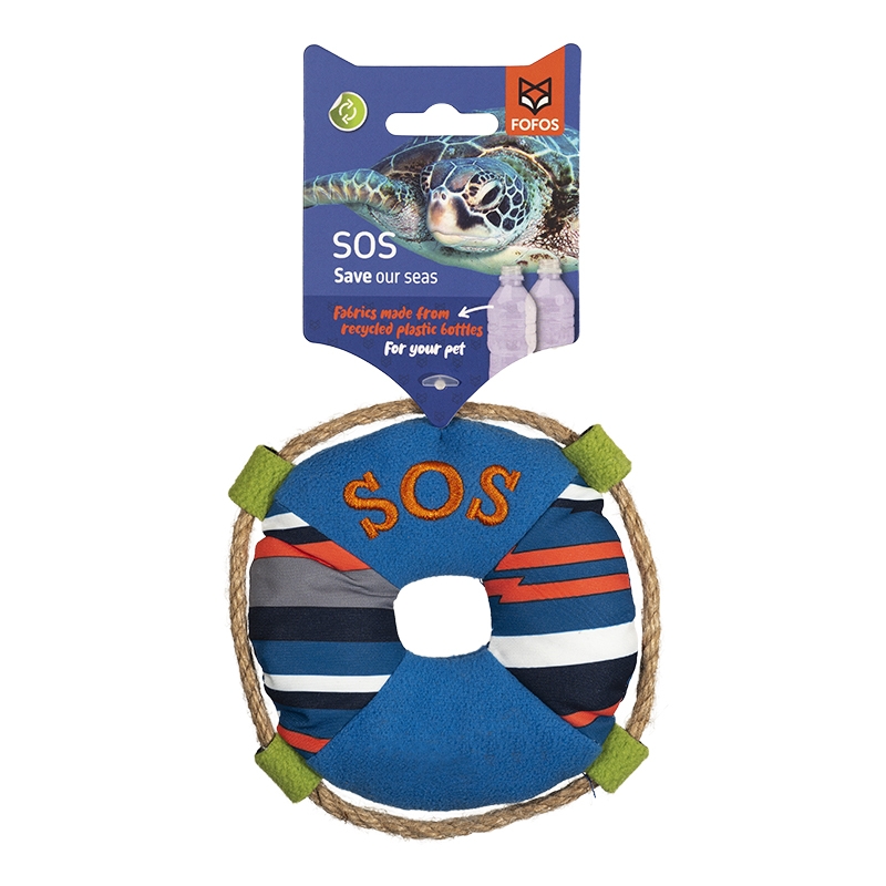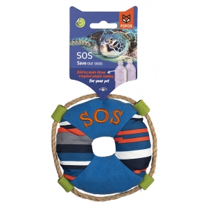 Gioco per cani realizzato con corda naturale, riciclando bottiglie di plastica