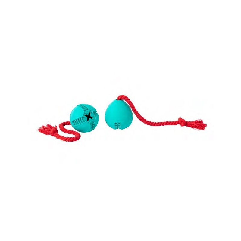 Gioco Cane in Gomma PALLINA CON LACCIO per crocchette - 7,6x8 cm - Galleggiante