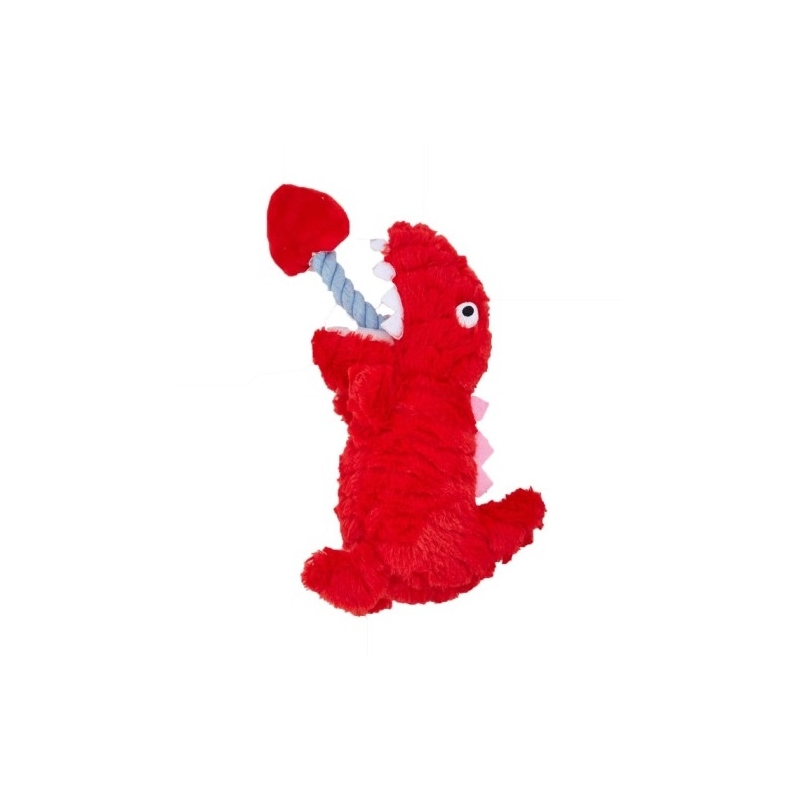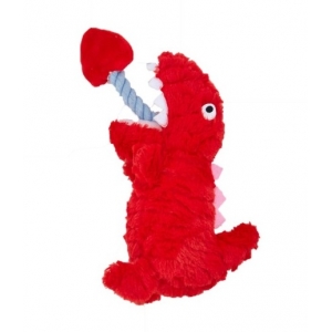 Tenero Dinosauro Rosso con cuore di Peluche per il tuo amico a quattro zampe.
