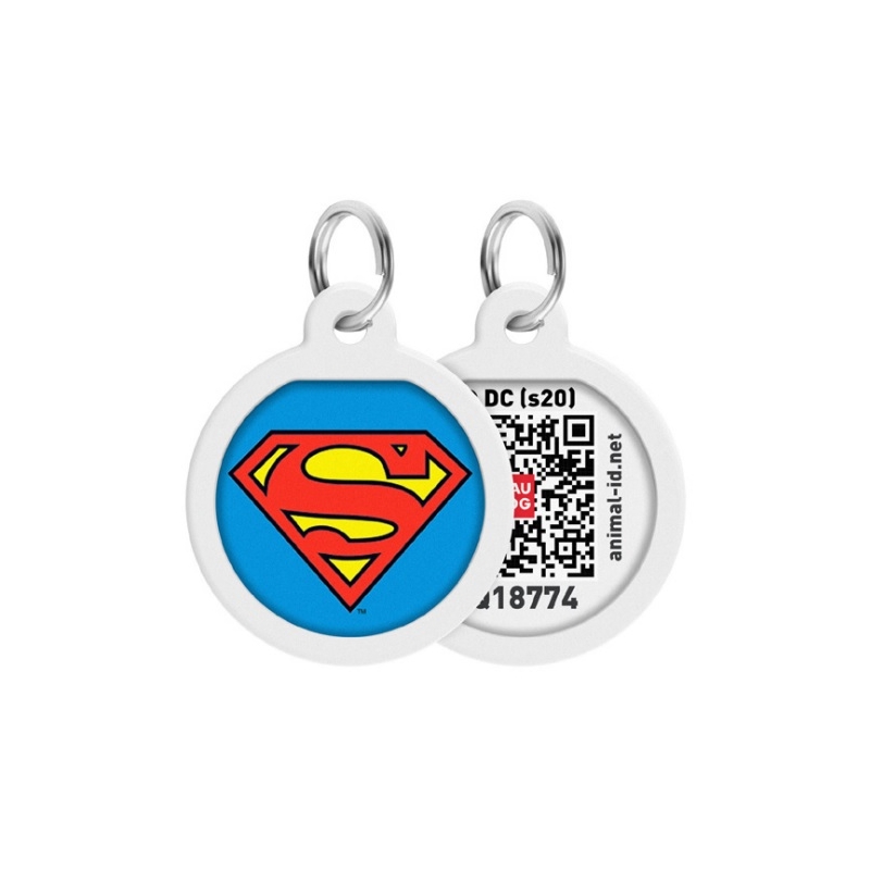 Medaglietta WAUDOG SUPERMAN IS HERO in Metallo per cani con QR CODE - D 25 mm