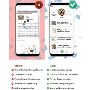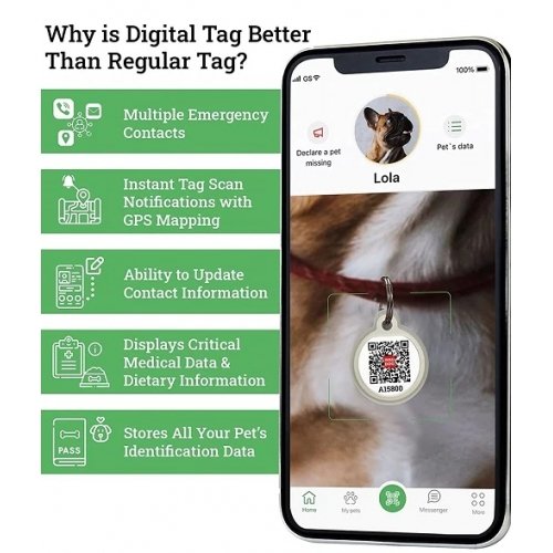 Questa Medaglietta con QR Code integrato rende facile contattare il proprietario di un animale smarrito. Il QR Code sulla medaglietta consente di creare gratuitamente una carta d'identità elettronica per il tuo animale domestico per conservare informazioni importanti: contatti del proprietario, informazioni sulle cure mediche, pedigree, foto ecc.