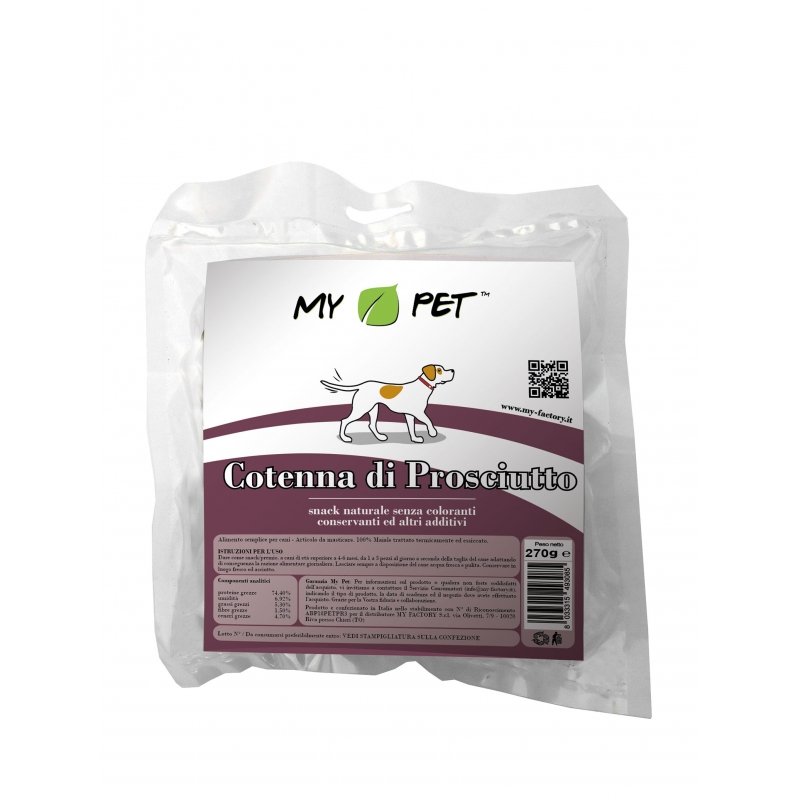 Alimento semplice per cani. Articolo da masticare. 100% Maiale trattato termicamente ed essiccato.