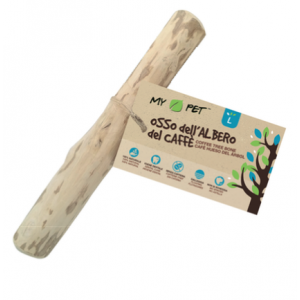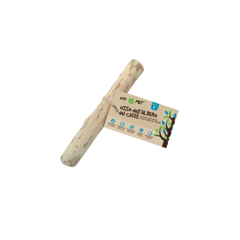 Questo snack per cani è naturale al 100% - ottenuto dalla potatura annuale della pianta di caffè - si caratterizza per i numerosi benefici e soprattutto per essere uno snack-gioco, dal gusto dolciastro, molto apprezzato!