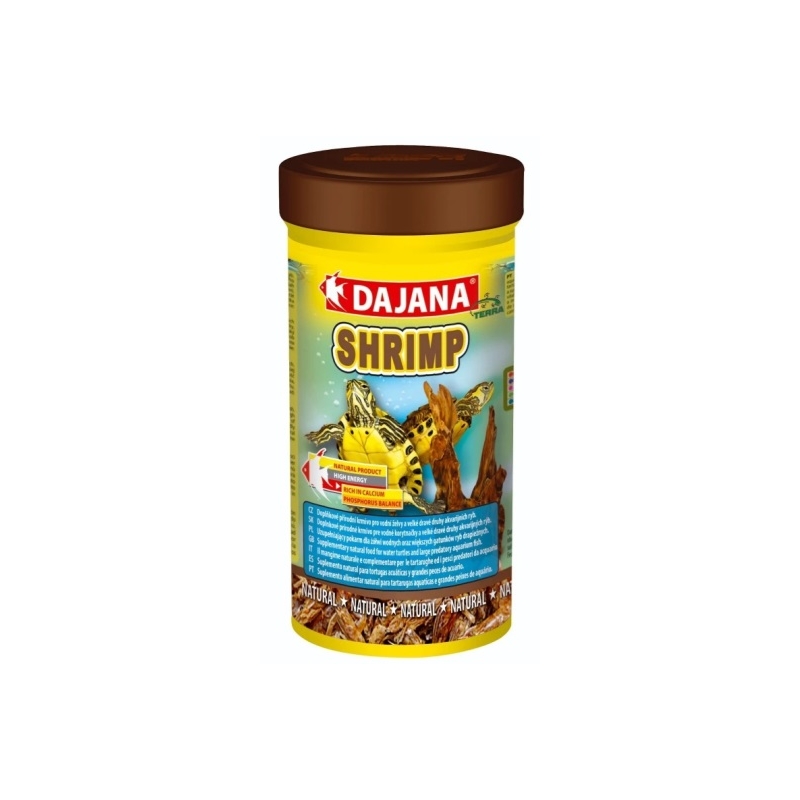 Mangime per tartarughe acquatiche, animali da terrario e acquari marini. Essiccazione dei gamberetti.