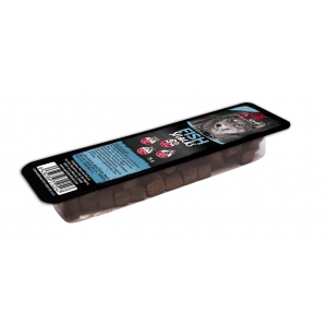 Composizione: 55% pesce intero fresco, 20% pollo fresco, 10% fegato di maiale, amido idrolizzato, glicerina vegetale (USP)
